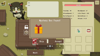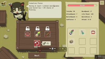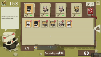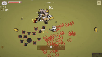 Meow Legion is a top-down roguelite shooter game where you hire cats and level them up to fight mice from the evil Mousy Empire!